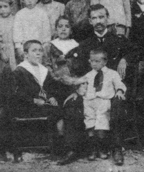 καθιστός ο Παλαιοκρασσάς Σωκράτης του Γεωργίου (1112311) #1826 info όρθιος ο Φαλαγκάς Ιωάννης του Γεωργίου (13222) #706 ο δάσκαλος Βασιλόπουλος παπαΝίκος του Ιωάννη (1) #2401 info και εμπρός του ο γιος του Βασιλόπουλος Γιάννης του Νικολάου (11) - .