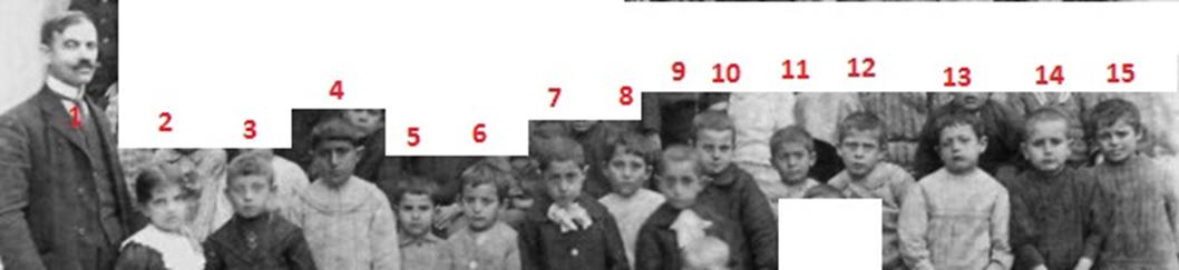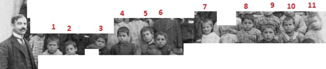Σημ. Στην καταγραφή προφανώς υπάρχουν λάθη. Κάποιος αναφέρεται δύο φορές και σε άλλους η ηλικία δεν ταιριάζει για γεννηθέντες μεταξύ των ετών 1901 και 1908. Επίσης στην τέταρτη σειρά εμφανίζονται 11 μαθητές, ενώ αναφέρονται 10.