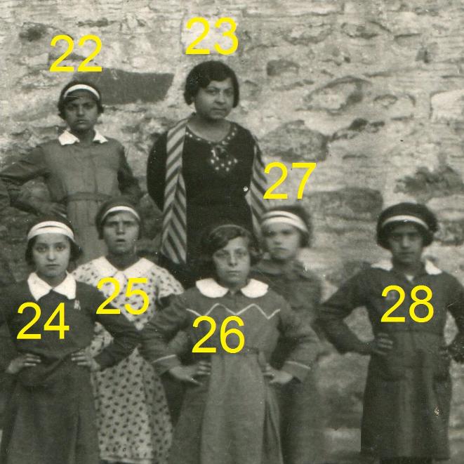 1. Ο Κερκυραίος δάσκαλος Σπύρος Παγκράτης. 2. Παλαιοκρασσά Ειρήνη του Ιωάννη (11141331) #2432 info σύζ. Τζουμέζη Θεοδοσίου του Δημητρίου 3. Κουτσούκου Κούλα του Αντωνίου (1292) #2043 info σύζ. Πασχάλη Δημητρίου του Σωκράτη 4. Κουρτέση Μαρουλιώ του Βασιλείου (1342) #2299 info σύζ. Σαρρή Χρήστου του Αντωνίου 5. Πασχάλη Φωτεινή του Ιωάννη (111242) σύζ. Φυρίου Νικολάου. 6. Εξαδακτύλου Μαρίκα του Γεωργίου (152) #2483 info σύζ. Ρίγλη Γεωργίου του Νικολάου 7. Σύμπουρα Ελένη του Νικολάου (12215) #2277 σύζ. Σούτα Νικολάου του Κωνσταντίνου 8. Παλαιοκρασσά Κατίνα του Αριστείδη (13411) #3259 info σύζ. Κυρτάτα Δημήτρη του Λεωνίδα 9. Ξηροπαΐδη Κατίνα του Βασιλείου (1234) #4387 σύζ. Πουλιέζου Παναγιώτη του Δημητρίου 10. Κυρτάτα Διαμάντη του Λεωνίδα (11221424) - 11. Τζουμέζη Ειρήνη του Αριστείδη (11723) #822 info σύζ. Δαγιάση Δημητρίου του Ματθαίου.