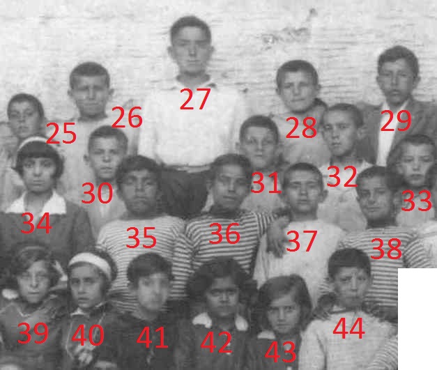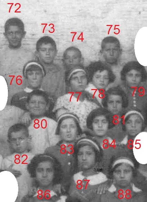 89. άγνωστος 90. άγνωστος 91. ο δάσκαλος Σπύρος Παγκράτης 92. άγνωστος 93. άγνωστο αγόρι που μόλις διακρίνεται 94. άγνωστος 95. άγνωστη 96. άγνωστη 97. Ξηροπαΐδη Κούλα του Γεωργίου (1255) #920 σύζ. Πολέμη Ευαγγέλου του Λεωνίδα 98. Σύμπουρα Φραγκούλα του Μιχαήλ (12221) #1531 info σύζ. Ραΐση Νικολάου του Μιλτιάδη. 99. Γιαννίση Σούλα του Νικολάου (1112) #2531 info σύζ. Βασιλόπουλου Τηλέμαχου του παπαΝίκου . 100. άγνωστη 101. άγνωστος 102. Ζαννάκης Αντώνης του Λεωνίδα (164) #4709 info (με τον επίδεσμο) 103. άγνωστος 104. άγνωστος 105. άγνωστος 106. άγνωστος