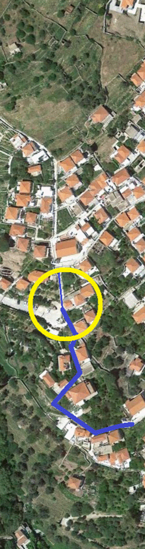 Κάτω αριστερά, το σπίτι του Πέργα είναι εκεί που αρχίζει η παχύτερη μπλε γραμμή, στο κέντρο του κίτρινου κύκλου.