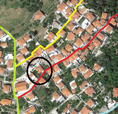 (1) στην δορυφορική φωτογραφία παραπάνω με κόκκινη γραμμή. (2) στην επόμενη φωτογραφία, το κτίσμα στον άσπρο κύκλο. (3)Κατά τον κο Νικόλαο Αντώνογλου λεγόταν Γιάννης Δεδούσαρος.