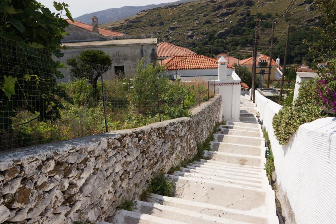 Μετά την είσοδο στο σπίτι του Σάββα και κάτω από το σπίτι της Κούλας (1292) #2043 info και του Δημήτρη Πασχάλη (111211) #148 info(που χτίστηκε πάνω στη θέση που ήταν το πρώην παλιόσπιτο της «Μούγαινας»), είναι το σπίτι της Σμαρώς (12342) #1536 και του Αντρείκου Στεφάνου (Μιγαδένιου) (124) #1497. Στο ισόγειο του (5), ο ξυλουργός από τα’Αποίκια, Πέτρος Ρούσσος άνοιξε το πρώτο στο επάνω χωριό ξυλουργείο (μαραγκούδικο) με βοηθό τον συγχωριανό του Πέτρο Χέλμη. Ο Ρούσσος αργότερα παντρεύτηκε την μικρότερη και ωραιότερη από τις κόρες του παπα-Δημητράκη του Γκίκα, που είχε έλθει από την Πάρο το 1931, σαν εφημέριος στην ενορία της Παναγίας. Κατοικούσε με την παπαδιά και τις τρεις κόρες του στο σπίτι της Ορσάκης (123), συζύγου Μιχαήλ Μάνεση (1111256) #463 info η οποία πέθανε μετά τον τοκετό της από επιλόχειο πυρετό. Από τις κόρες του παπα-Δημητράκη η πρώτη, παρέμεινε ανύπανδρη και απ’ότι λέγονταν ήταν μέλος της (θρησκευτικής) οργάνωσης «Ζωή». Η δεύτερη, η Κατίνα με τα προτεταμένα και ευτραφή στήθη της παντρεύτηκε έναν εργολάβο από την Πάρο. Η Τρίτη, η Ελένη, με το αρχαιοελληνικό της πρόσωπο παντρεύτηκε τον Πέτρο Ρούσσο. Ο παπα-Δημητράκης εξέτρεφε γαλοπούλα που κάθε βράδυ τάιζε με ένα καρύδι. Μετά την αποχώρηση του Ρούσσου, το ξυλουργείο εξακολουθούσε να λειτουργεί για λίγο χρονικό διάστημα, ο Θόδωρος Τζιβάρας, από τις Στραπουργιές. ____________________________________