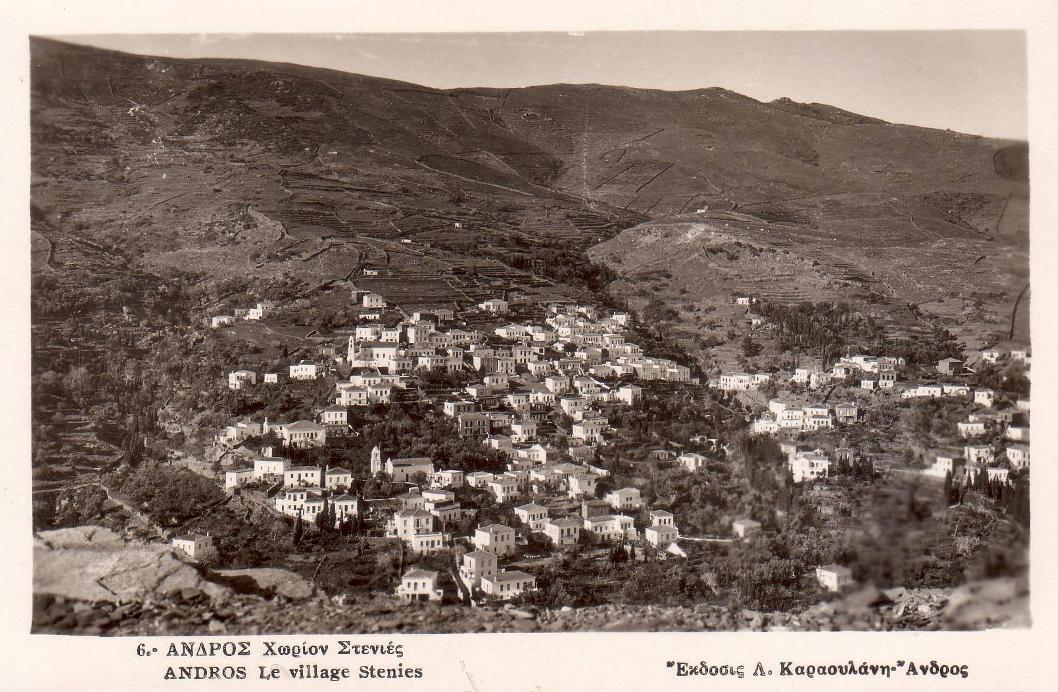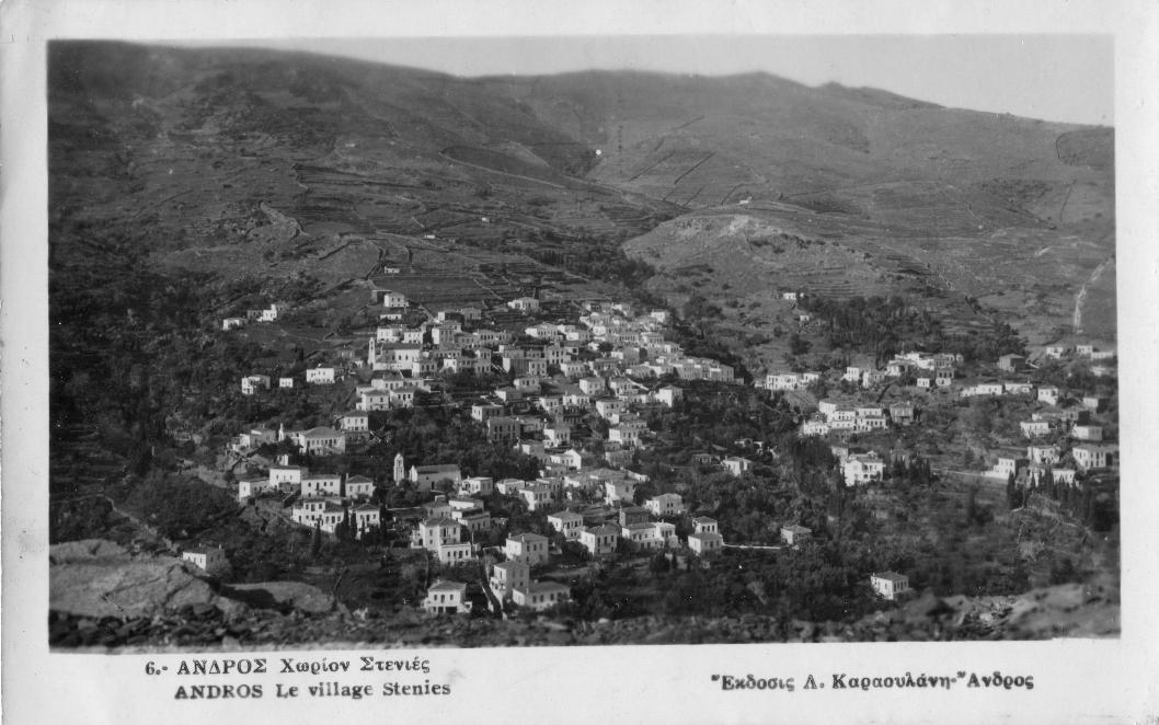 Την ασπρόμαυρη καρτ-ποστάλ προσέφερε ο κος Γιώργης Σπ. Καρυστινός ενώ τη σύγχρονη (Σεπτ. 2017) έγχρωμη που χρησιμεύει για σύγκριση, ο κος Νικολός Εξαδάκτυλος.