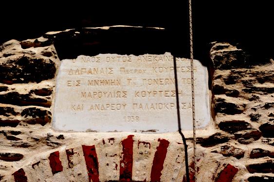 Ο ΝΑΟΣ ΟΥΤΟΣ ΑΝΕΚΑΙΝΗΣΘΗ ΔΑΠΑΝΑΙΣ ΠΕΤΡΟΥ ΚΟΥΡΤΕΣΗ ΕΙΣ ΜΝΗΜΗΝ ΤΩΝ ΓΟΝΕΩΝ ΤΟΥ ΜΑΡΟΥΛΙΩΣ ΚΟΥΡΤΕΣΗ ΚΑΙ ΑΝΔΡΕΟΥ ΠΑΛΑΙΟΚΡΑΣΑ 1938 |