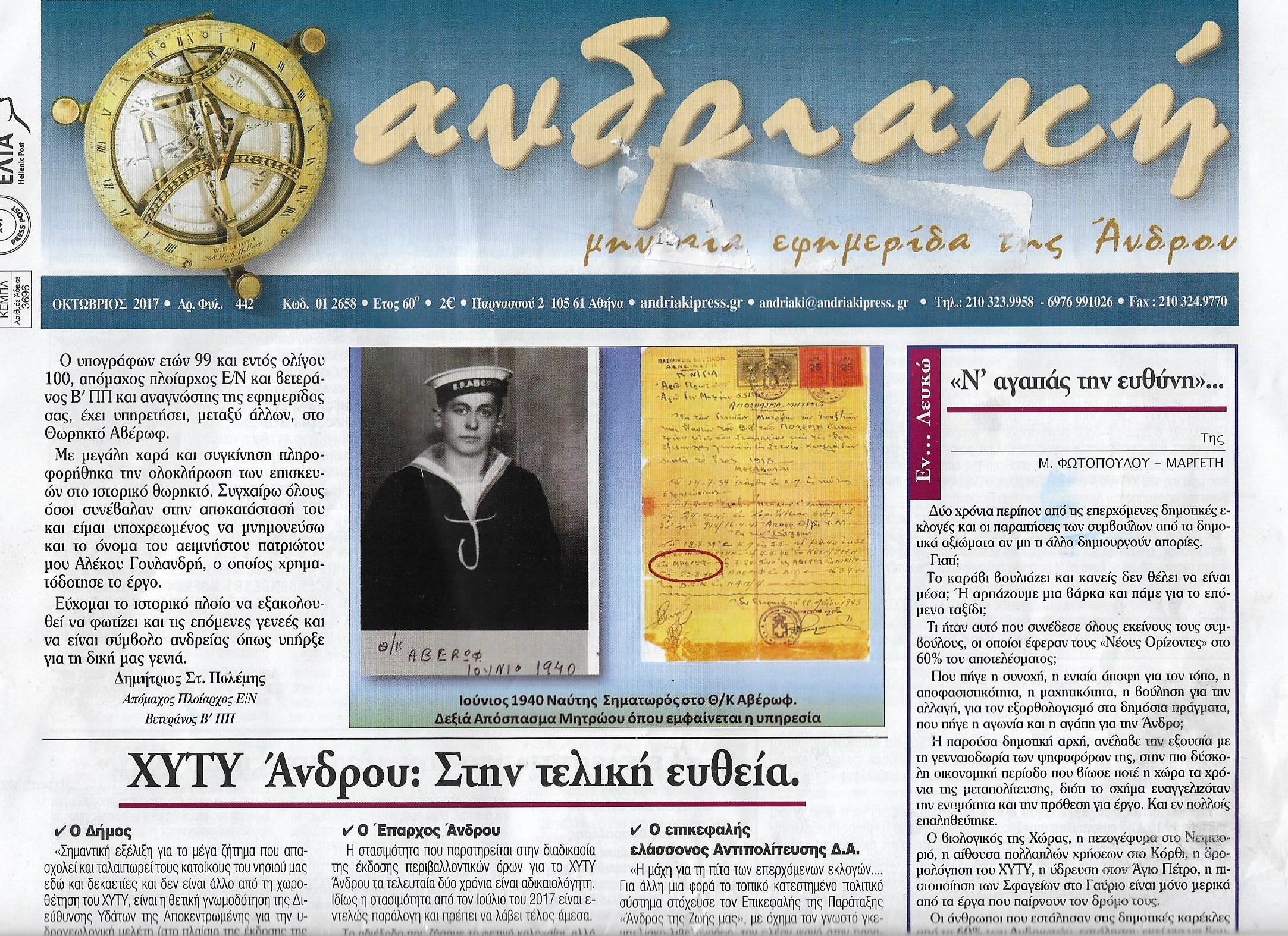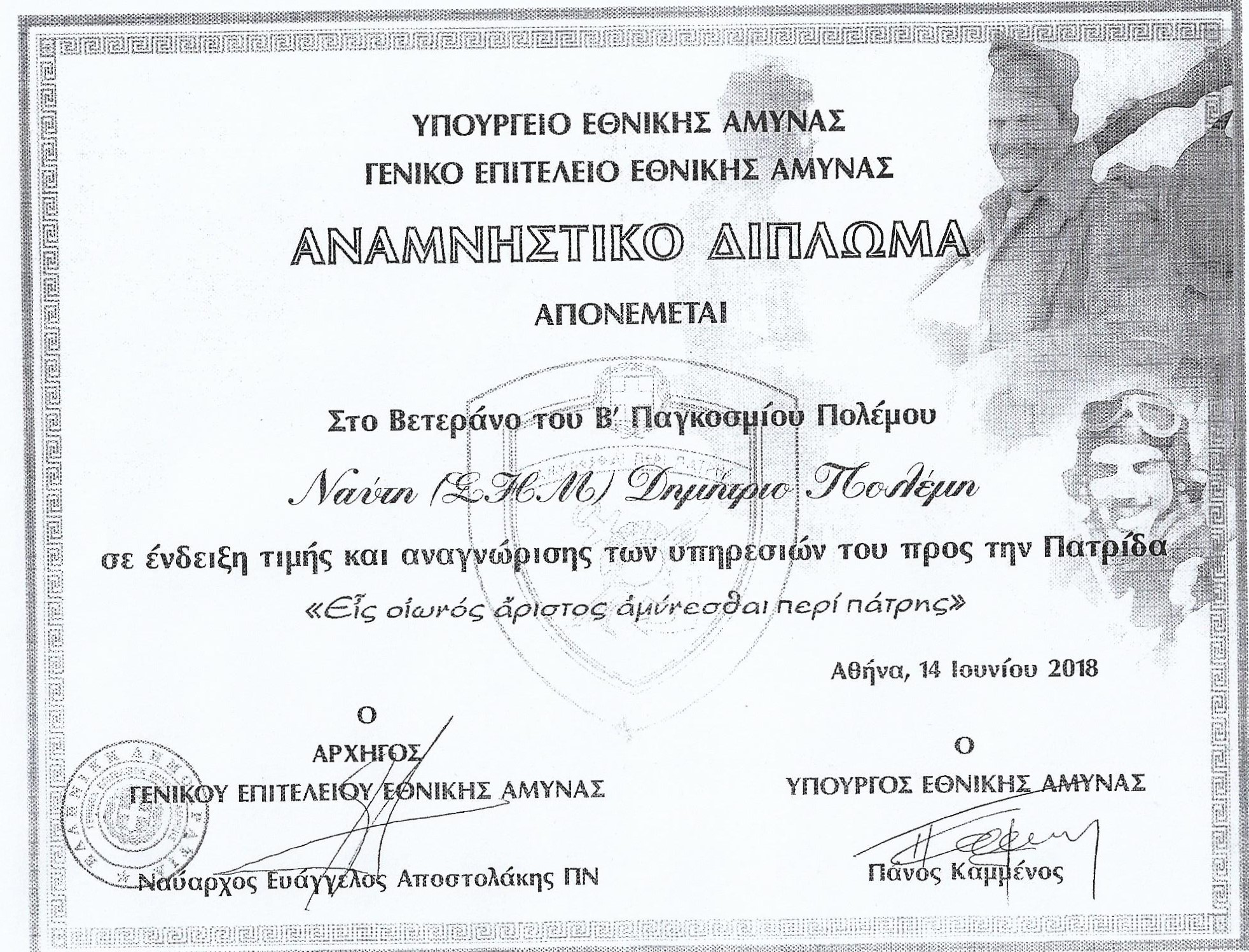 Τάκης Πολέμης γύρω στο 33 Δίπλωμα Βράβευσης ΥΠΕΘΑ Βραβείο Υπουργείου Αμύνης Ανδριακή Πάσχα 2018 Βράβευση Πενσπεν 99α Γενέθλια