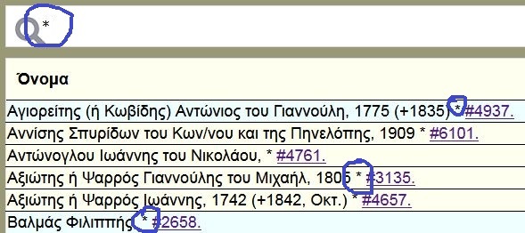υπάρχει ο αύξων αριθμός του ονόματος,